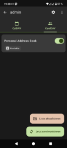Nach der Einrichtung der carddav/caldav-URLs sieht es exemplarisch in den Anwendungen wie folgt aus: