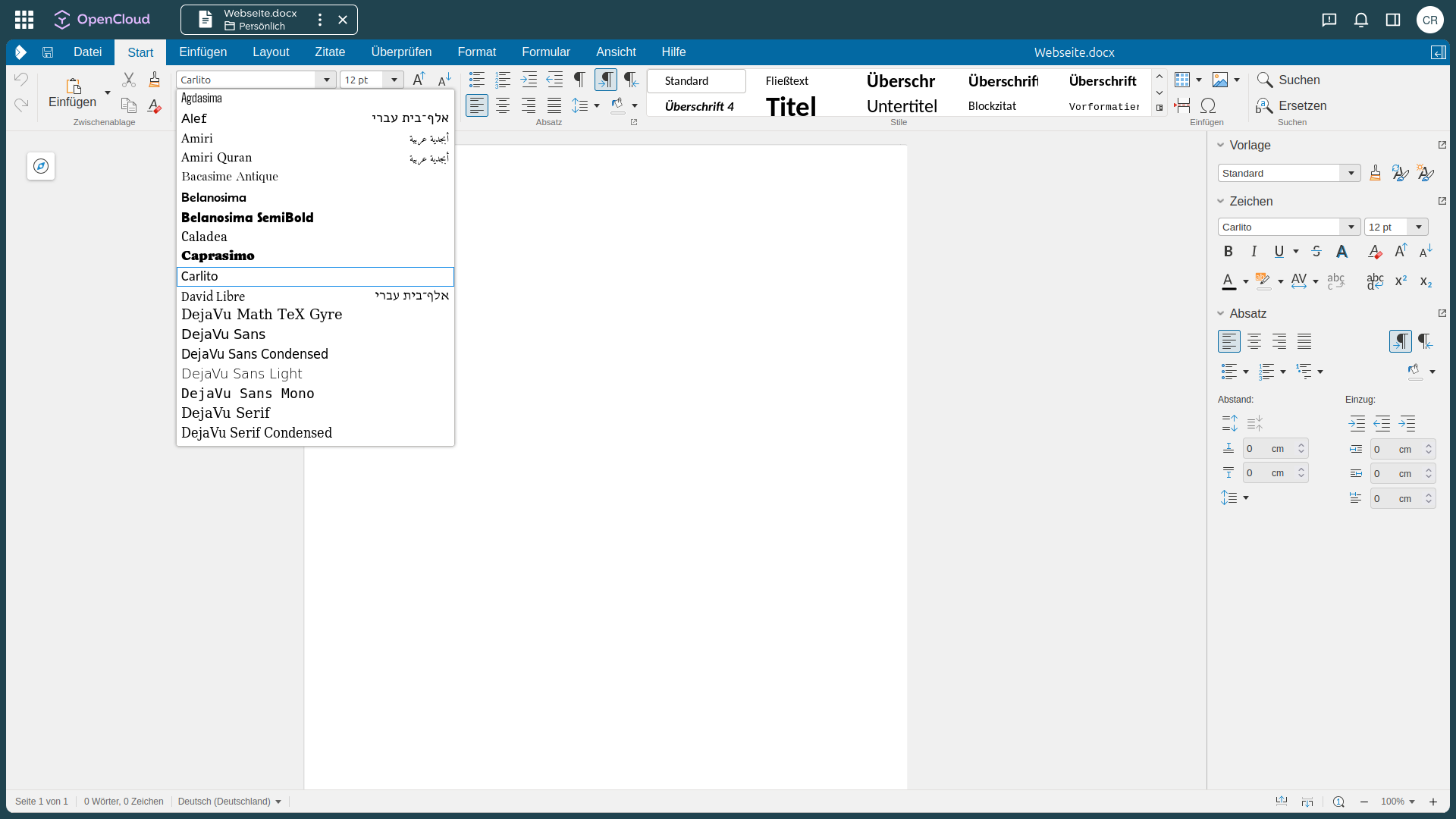Ihnen wird nun die OpenCloud dargestellt und Sie können unmittelbar mit der Verwaltung und Erstellung Ihrer Dokumente beginnen.