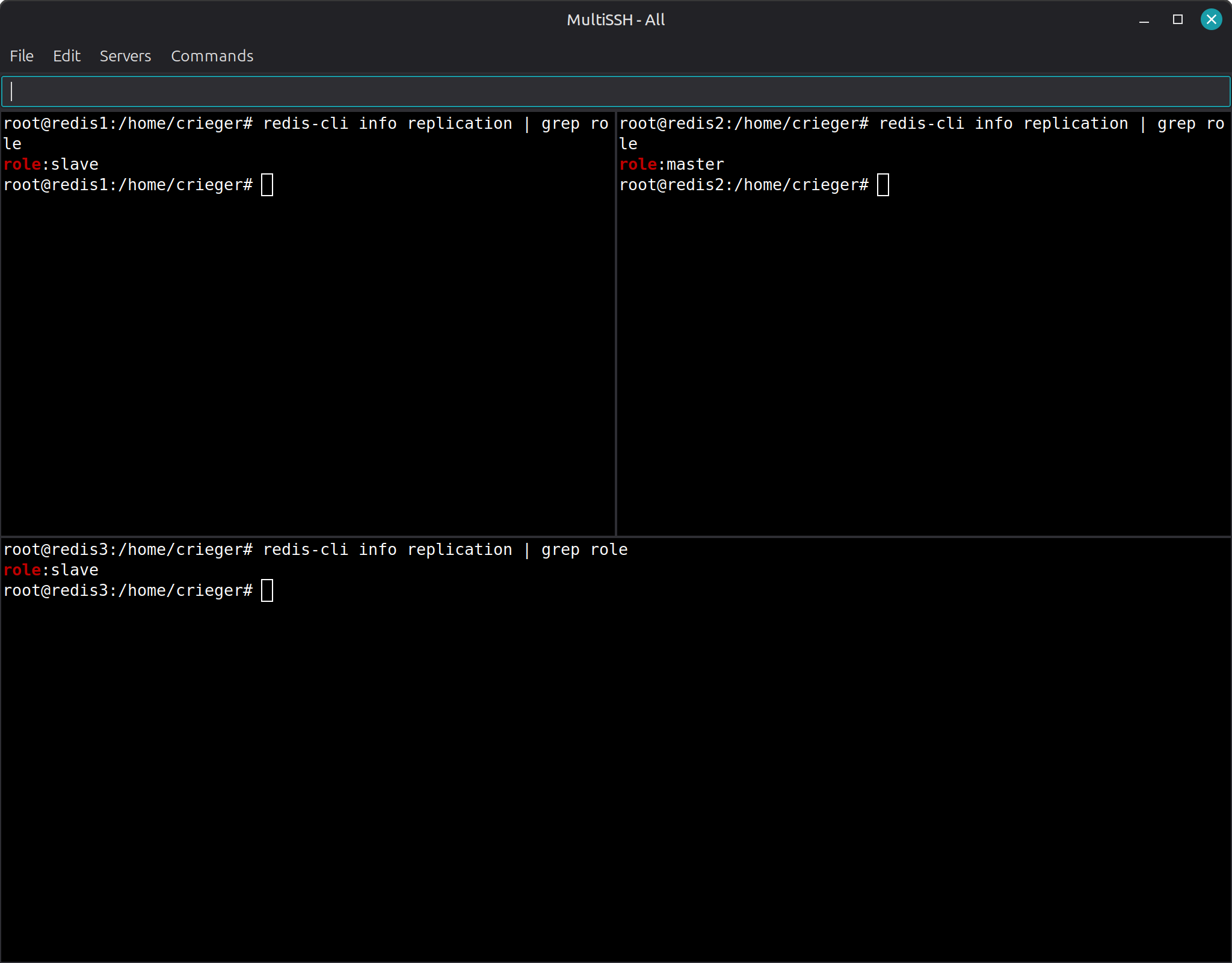 Sie können nun auf allen drei Redis-Nodes feststellen, wer im Verbund welche Redis-Rolle führt: